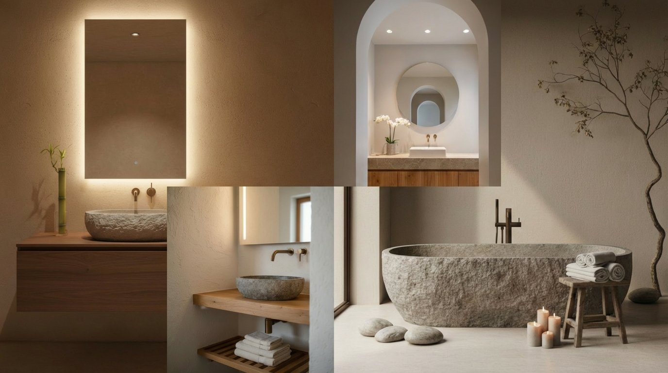 To implement this style, focus on natural textures that evoke the coast. Incorporate a vanity made of weathered oak or teak to bring in the element of driftwood. White shiplap on the lower half of the walls can brighten the space and add architectural interest, keeping the room from feeling too dark. Lighting should be warm and soft to enhance the relaxing atmosphere. A glass pendant light with a rope detail or a simple industrial sconce works beautifully here.