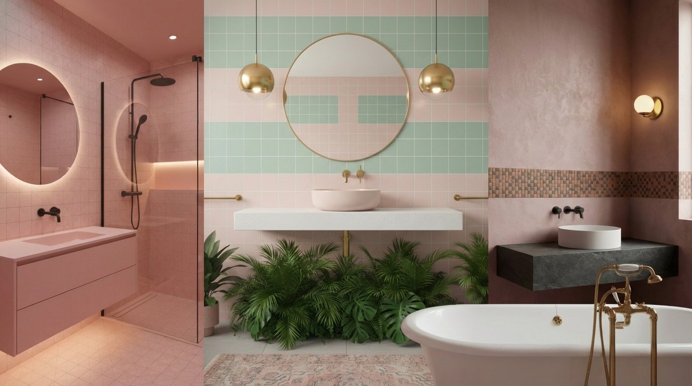 Wallpaper is back in a big way, and the “Flowers and Fish” concept embraces bold, nature-inspired prints. A wallpaper featuring a teal background with oversized floral or aquatic motifs can turn a boring bathroom into an art installation. This is maximalism at its finest. The busy pattern camouflages the boundaries of the room, which can actually make a small space feel infinite.