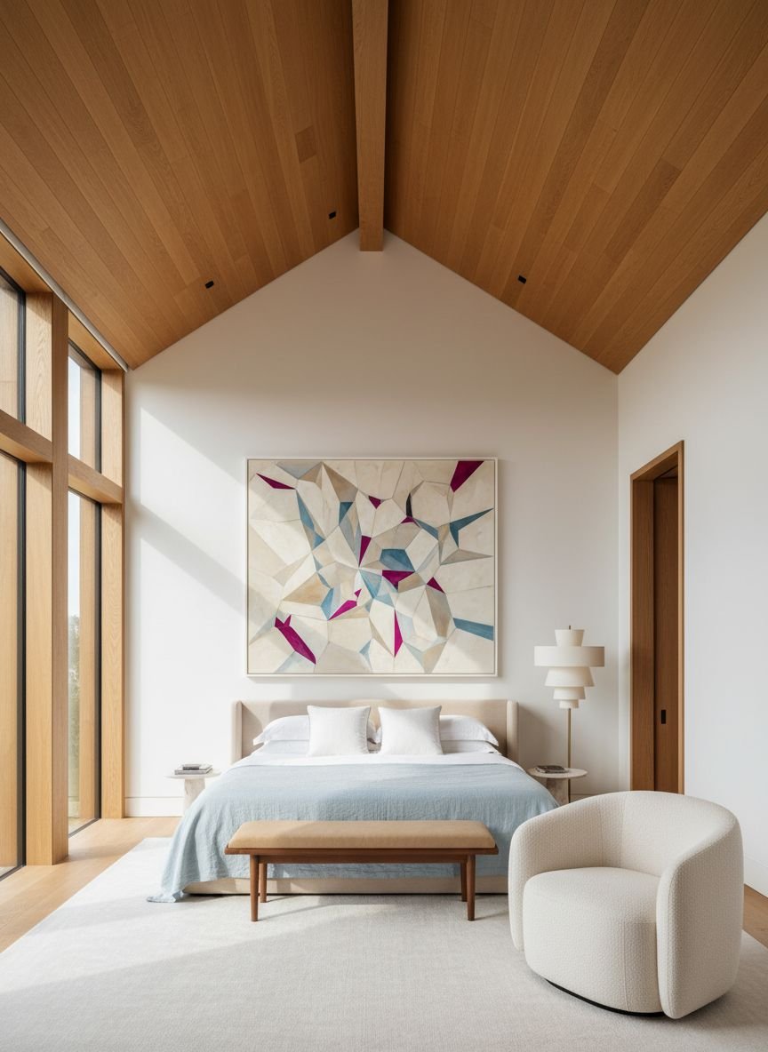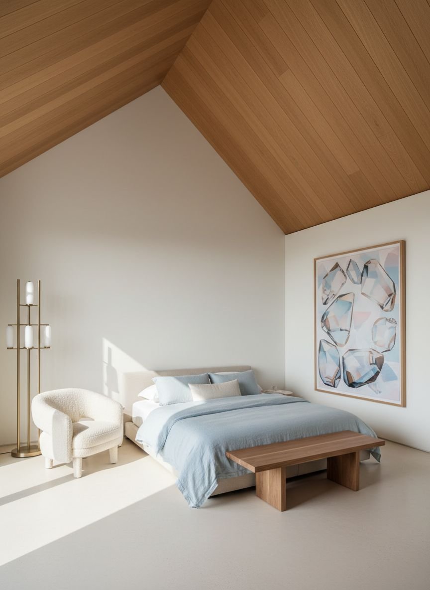 This style works particularly well in attic bedrooms or rooms with sloped ceilings. Instead of fighting the odd architecture, highlight it. Paint the sloped ceiling a contrasting color to turn it into a feature.
