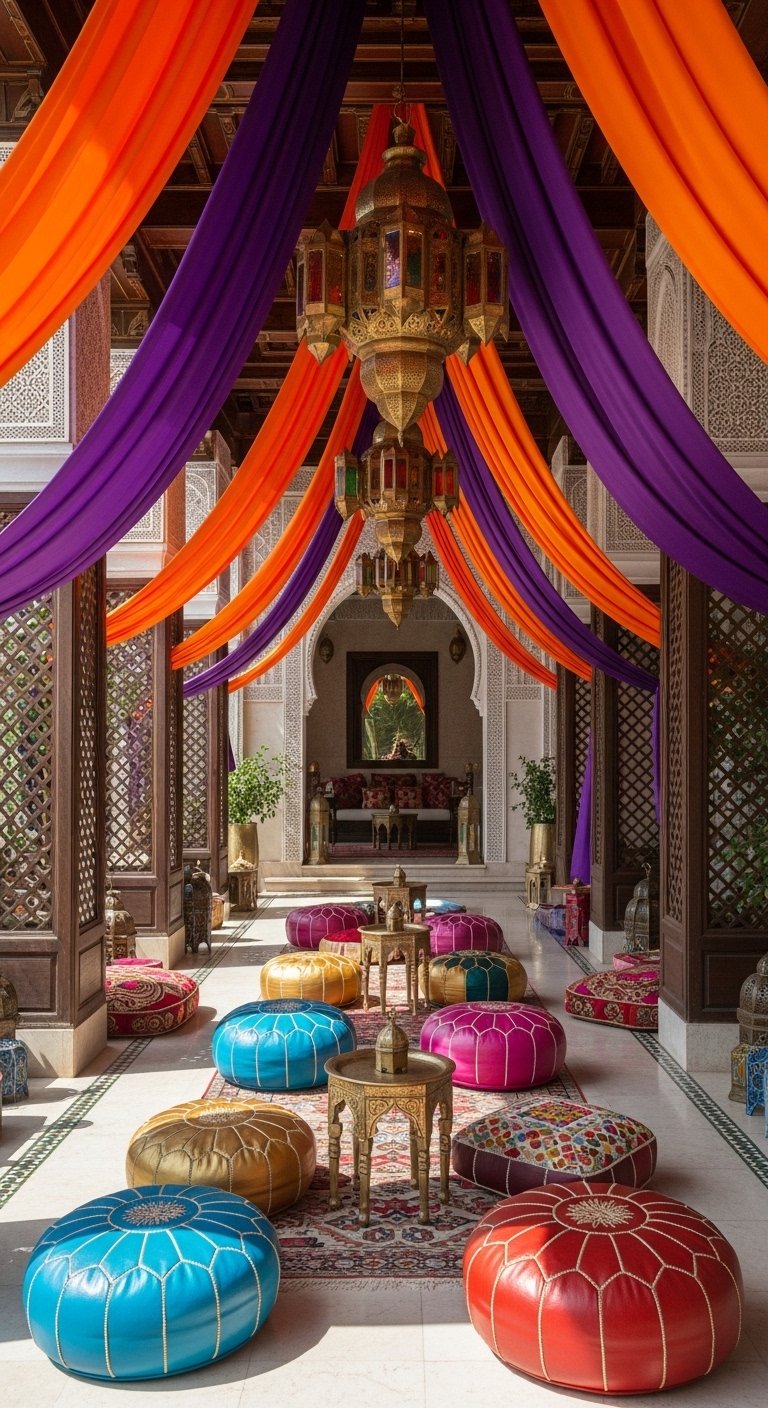 Inject vibrant energy into your backyard with a Moroccan-inspired tent ceiling. This involves draping rich, colorful fabrics with intricate patterns—think deep reds, burnt oranges, and royal blues—underneath a waterproof structure or as a standalone dry-weather canopy. The fabric is often gathered in the center, creating a tent-like peak that feels cozy and exotic.