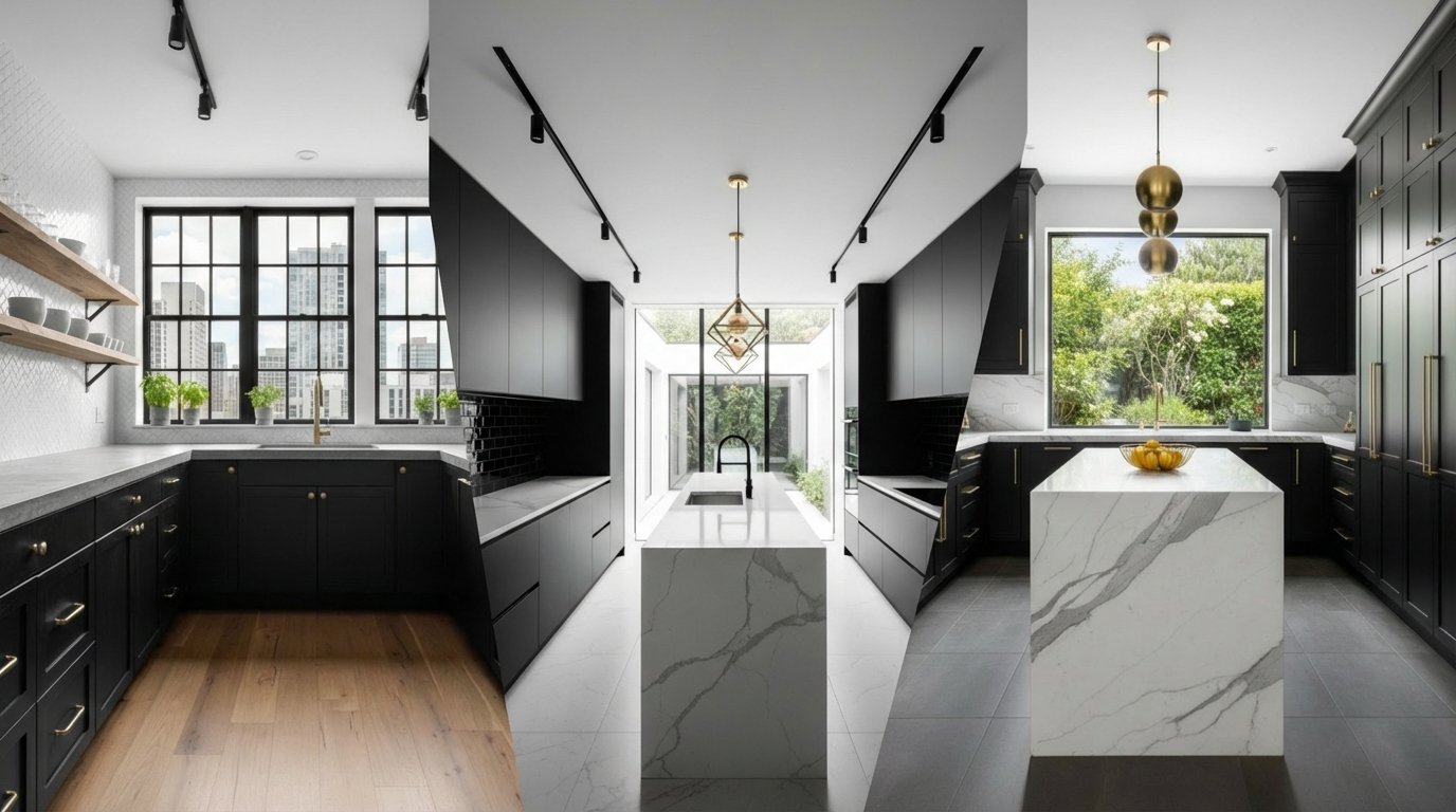 Pro Tip: Black tiles can show soap scum more easily than lighter ones, so opt for a matte or textured charcoal finish rather than a solid glossy black to minimize cleaning.