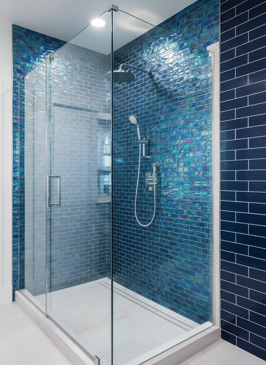 Pro Tip: Use a light grey or white grout to make the blue color pop. Dark grout can make blue tiles look muddy and reduce the fresh, airy vibe.