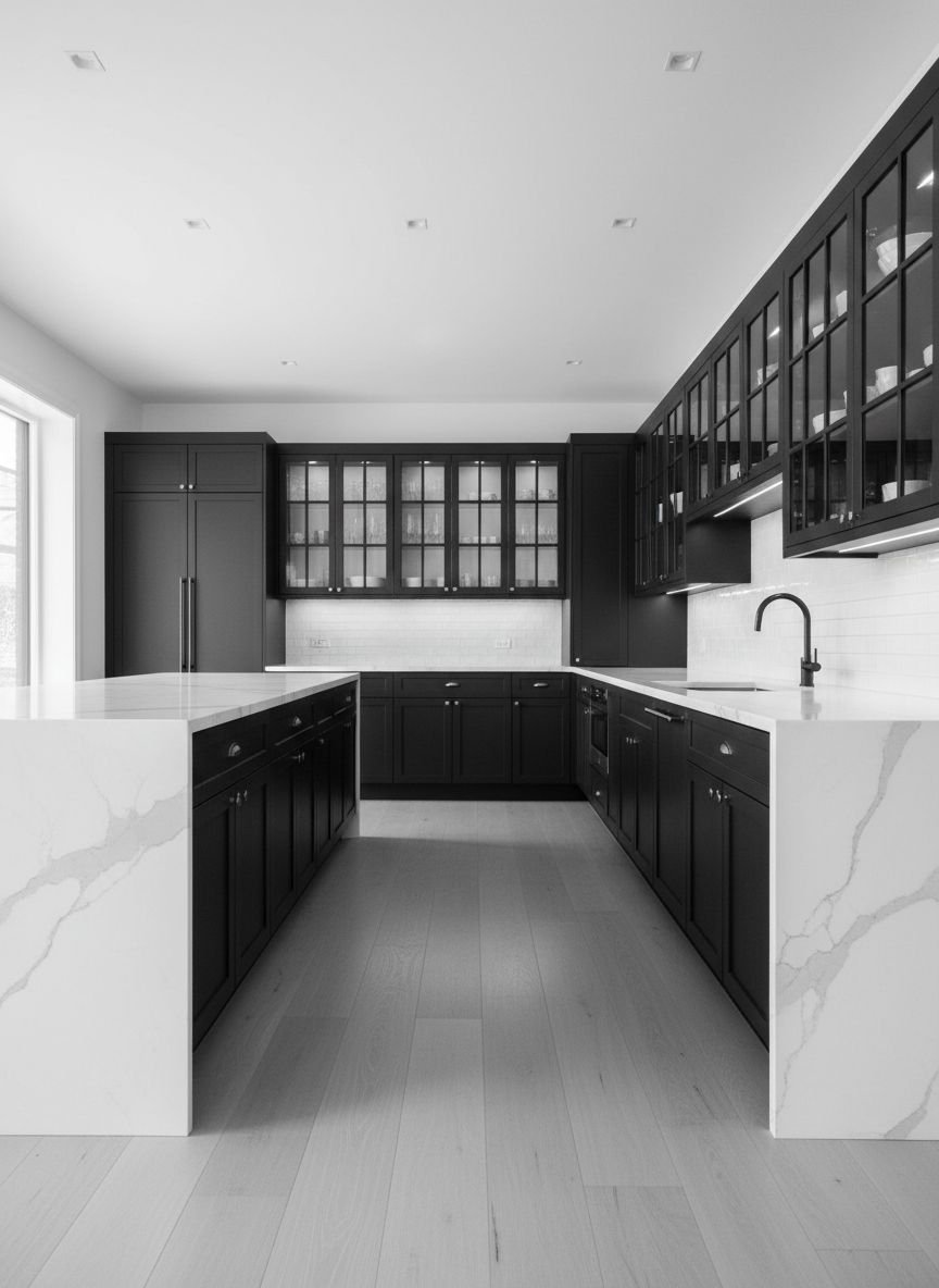 - Coastal Contrast: Black Cabinets in Beach-Inspired White Kitchen
