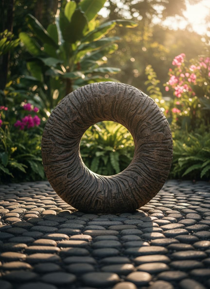Elevate a garden statue, a large urn, or a modern sculpture by placing it on a dedicated pebble base. This technique, known as “grounding,” gives the object visual weight and importance. By using concentric circles of different colored pebbles—for example, a ring of black stones surrounded by a ring of white—you draw the eye directly to the focal point. It acts like a frame for your art, turning a random object into a curated exhibit.