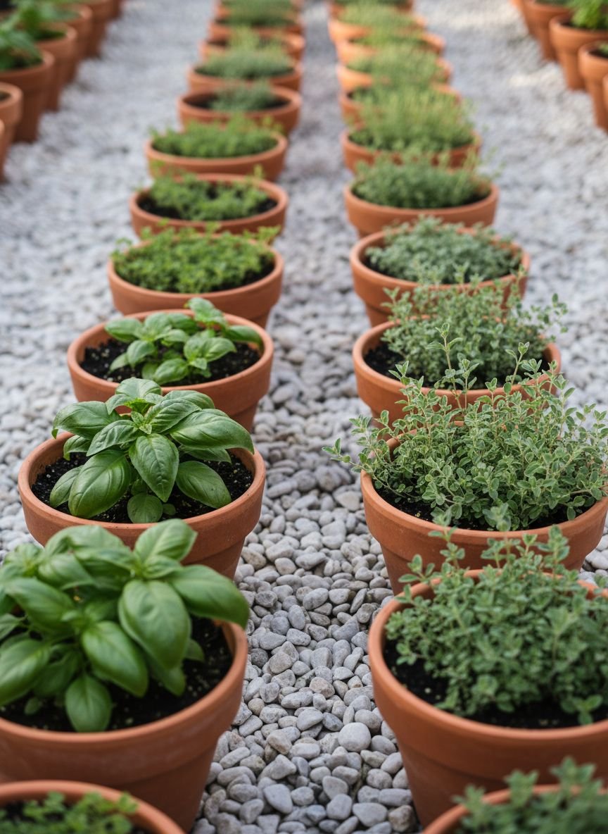 - Potted Herb Garden with Pebble Base