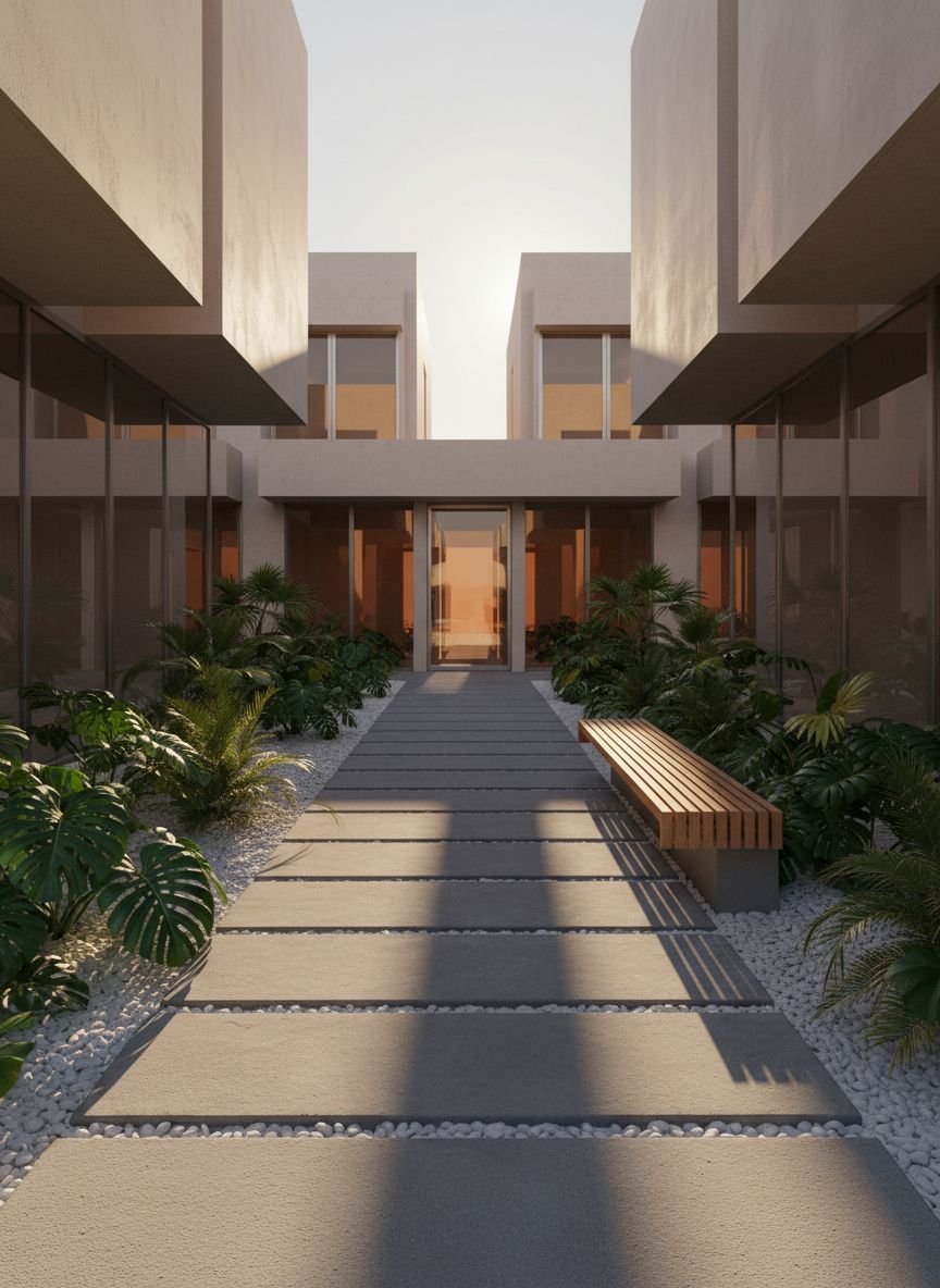 - Modern Minimalist Courtyard with Pebble Accents