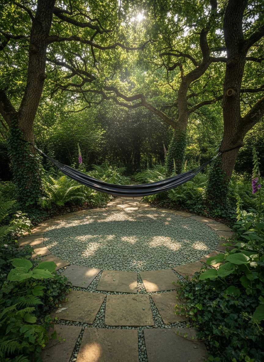 Relaxing Hammock Retreat with Pebble Flooring