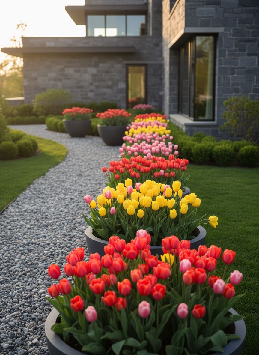 For a warm, Mediterranean feel, combine warm-toned pea gravel with terracotta accents. This style embraces imperfection—the path doesn’t need to be straight, and the stones can be a mix of tans, browns, and golds. Lining the walkway with terracotta pots filled with geraniums or lavender adds height and color. The crunch of the gravel and the warmth of the clay pots transport you to a villa in Tuscany.