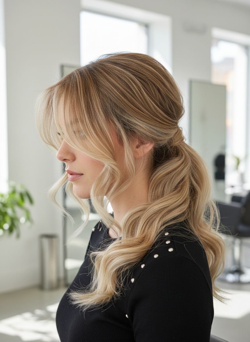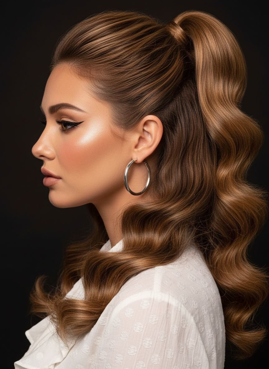 The wavy ponytail is the epitome of romantic styling. Soft, cascading waves soften the severity of pulling your hair back, making this a go-to for weddings, dates, and prom. Unlike the beachy wave, this wave is more polished and uniform, often created with a large-barrel curling iron.