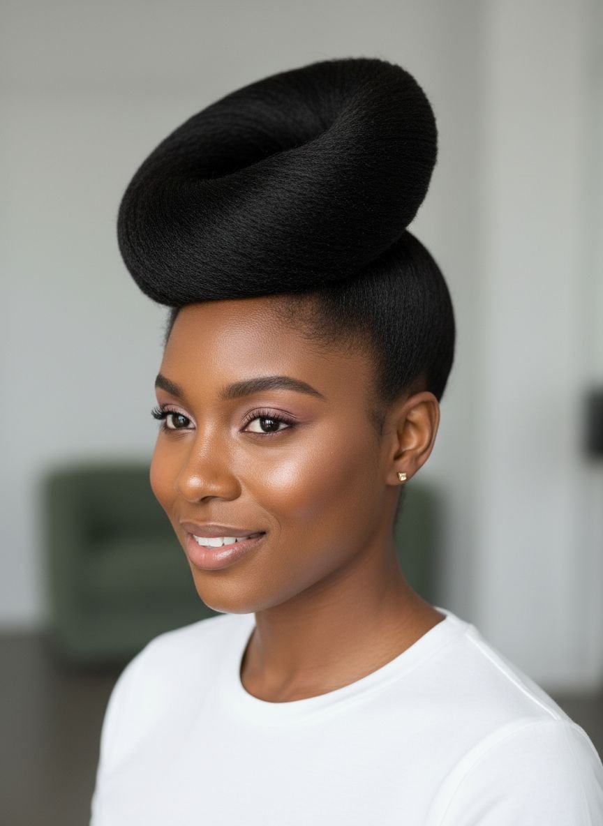 Is it a bun? Is it a ponytail? It is the best of both. The high bun ponytail starts as a looped bun but leaves the ends loose to trail down. This creates a sculptural shape at the crown while retaining the length and movement of a ponytail. It is an artistic, modern look that is often seen on fashion week runways because of its unique silhouette.