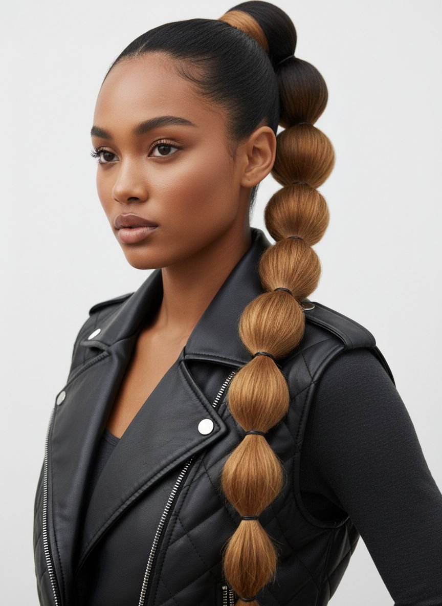 Fun, festive, and surprisingly easy, the bubble ponytail transforms a standard pony into a statement piece. It involves placing multiple elastics down the length of the ponytail and fluffing out the hair between them to create “bubbles.” It is a favorite for festivals and parties because it looks intricate but takes less than five minutes.