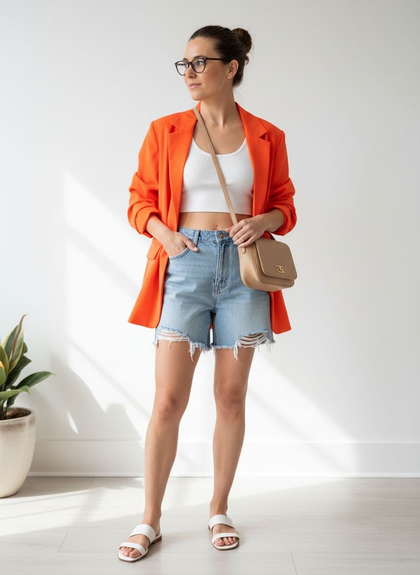 - Bright Neon Blazer with Denim Shorts 2026