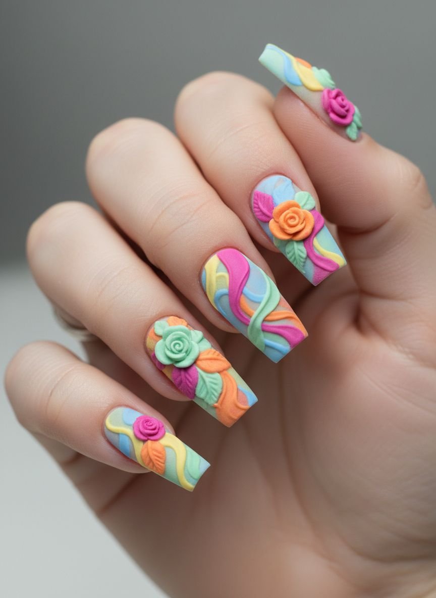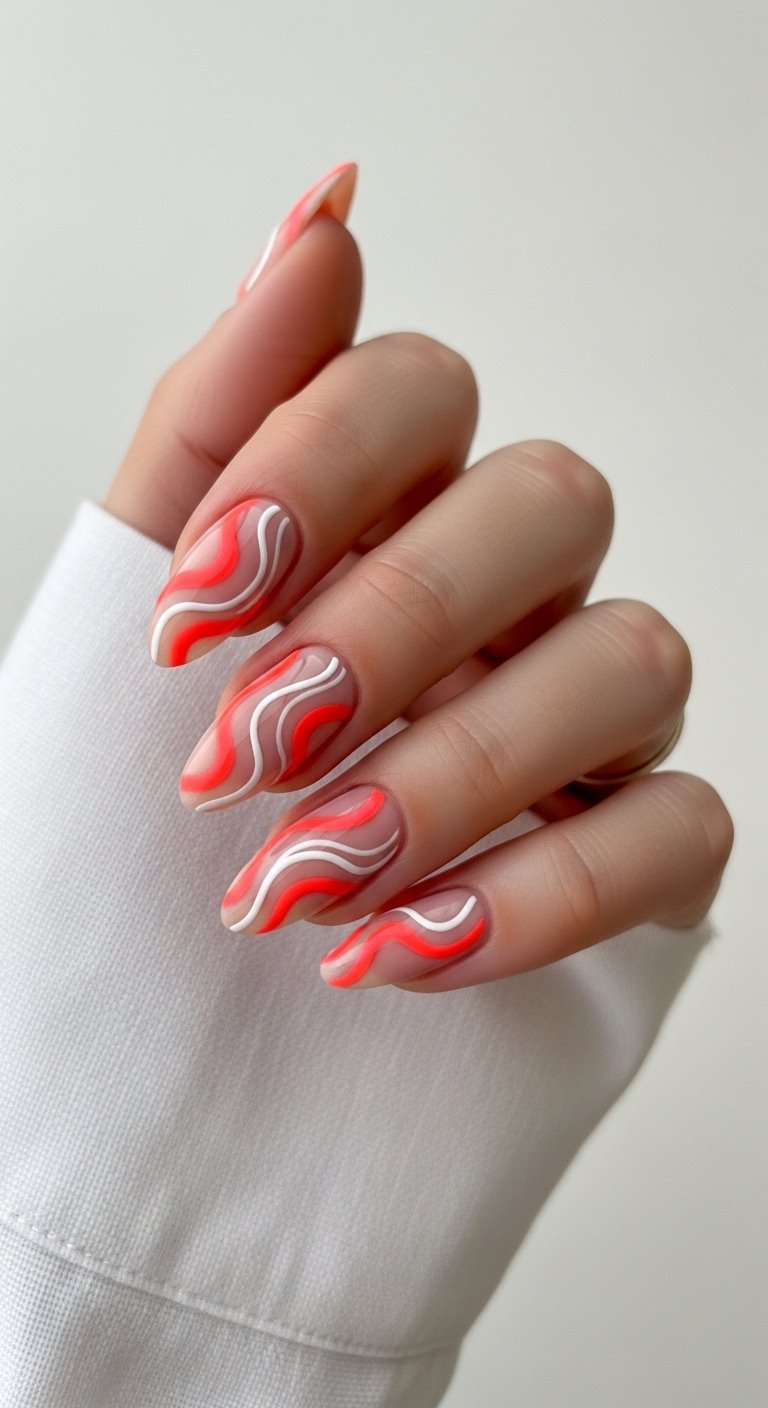 Abstract swirls are the reliable best friend of nail art. They are forgiving, stylish, and can be adapted to any color scheme. “I’m Just a Swirl” for a tropical vacation involves using a sheer nude base and painting thin, ribbon-like swirls in bright vacation colors—coral, mint, lavender, and peach.