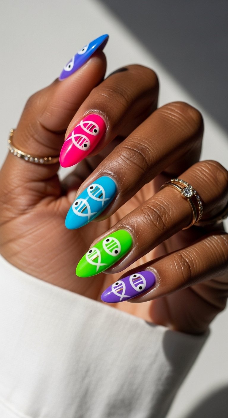 Pro Tip: If you cannot paint fish, look for high-quality Japanese nail stickers. They are incredibly thin and realistic. Seal them with two layers of top coat to ensure they do not peel up at the edges.