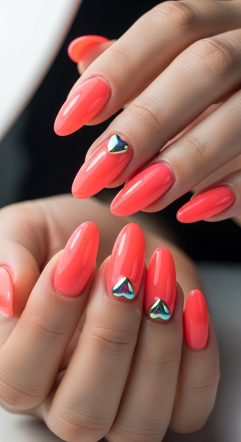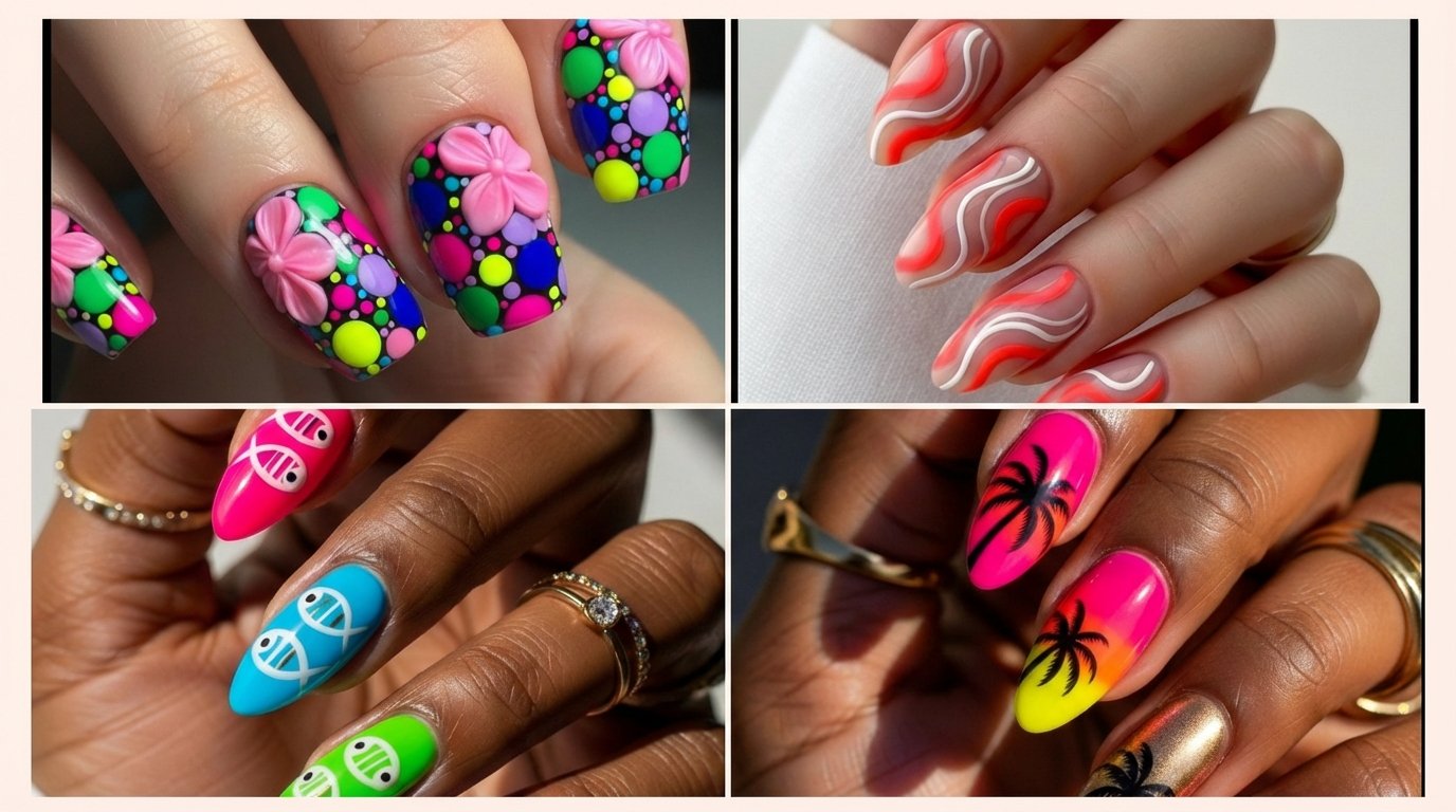 “Endless Summer” is the quintessential vacation manicure, focusing on high-saturation neon corals and pinks that pop against sun-kissed skin. This style often utilizes a solid color application but elevates it with a high-gloss “wet look” top coat. The color theory here is simple: warm, vibrant tones counteract the blue hues of the ocean and pool, making your hands the focal point of every photo.