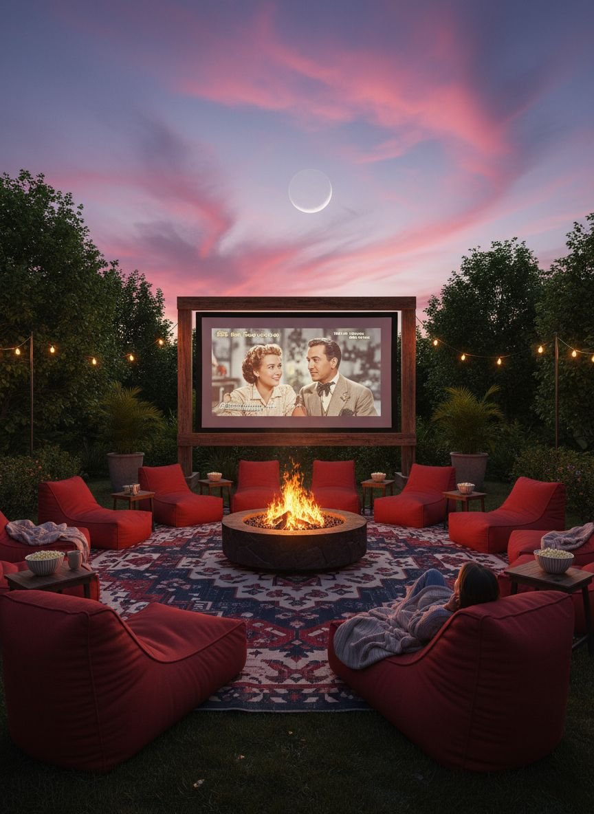 Sound control is vital. Bluetooth speakers paired with the projector keep the audio clear without annoying the neighbors. Surround the viewing area with tall potted plants or trellis panels to block streetlights and create a “room” effect. Keep a dedicated basket of blankets nearby for when the temperature drops. A small fire pit behind the seating area adds warmth and a place to roast marshmallows during intermission.