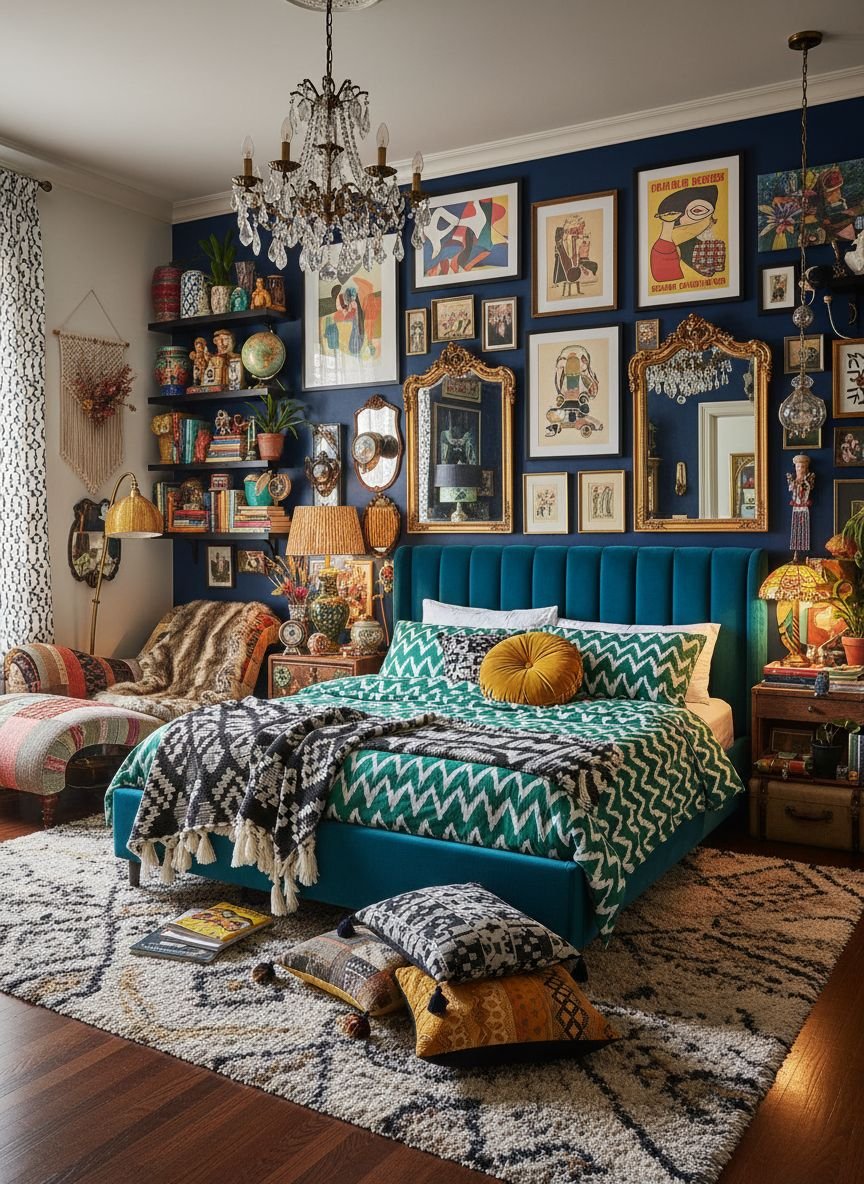 Pro Tip: Mix patterns fearlessly. Floral, tribal, and geometric prints can coexist if they share the same dark color palette.