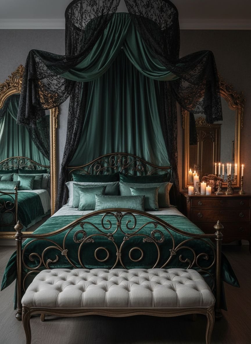 - Gothic Romance Featuring Black Lace and Emerald Accents