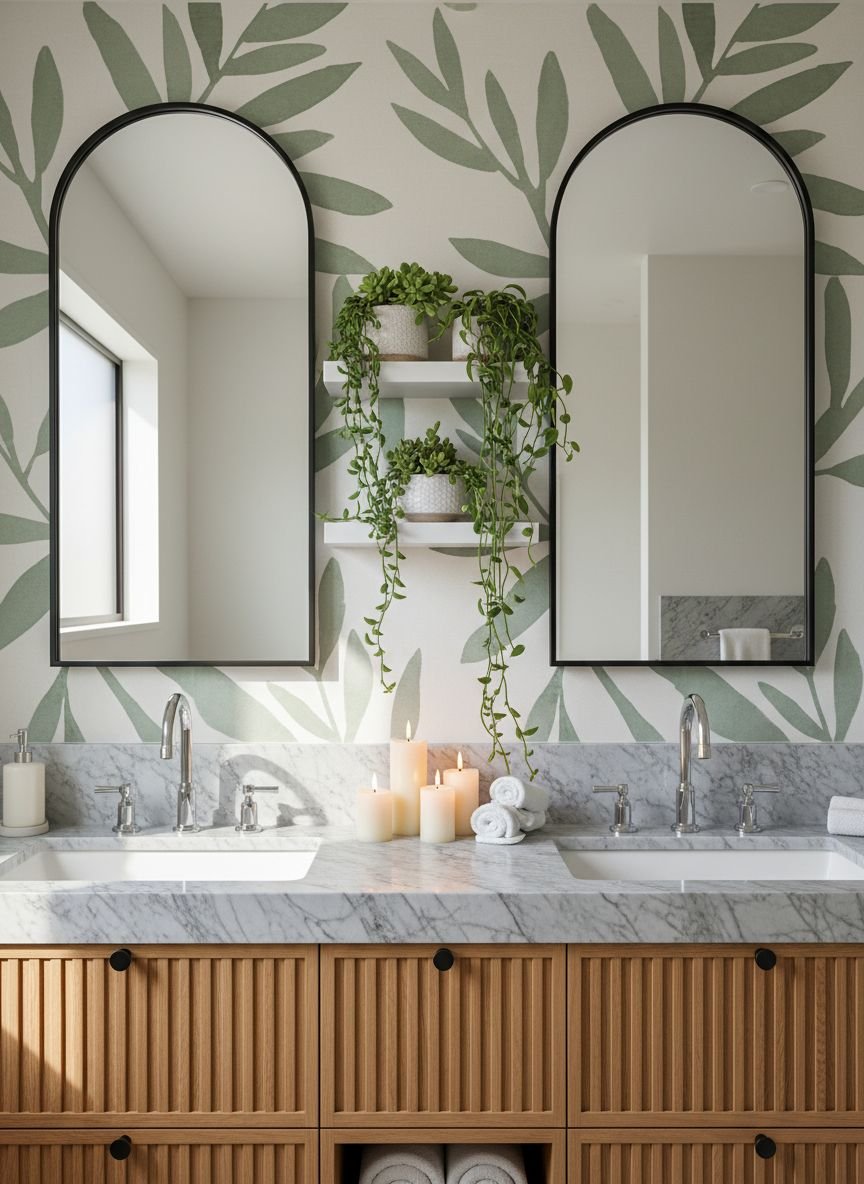 Bathrooms are the best place to experiment with wallpaper because they are enclosed spaces where you spend short bursts of time. You can get away with wild patterns, large-scale florals, or whimsical prints that might feel “too much” in a living room. Wallpaper adds personality and warmth that paint simply cannot achieve.
