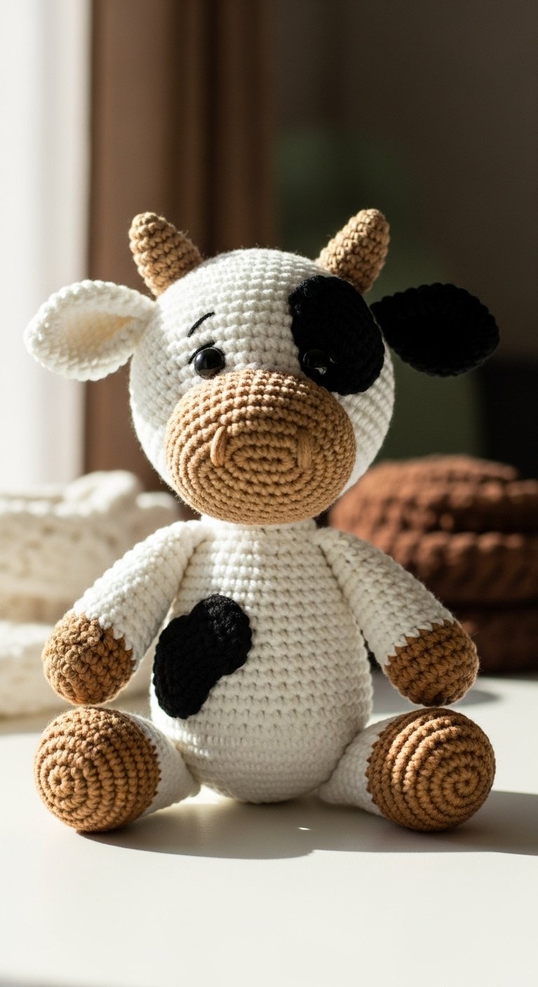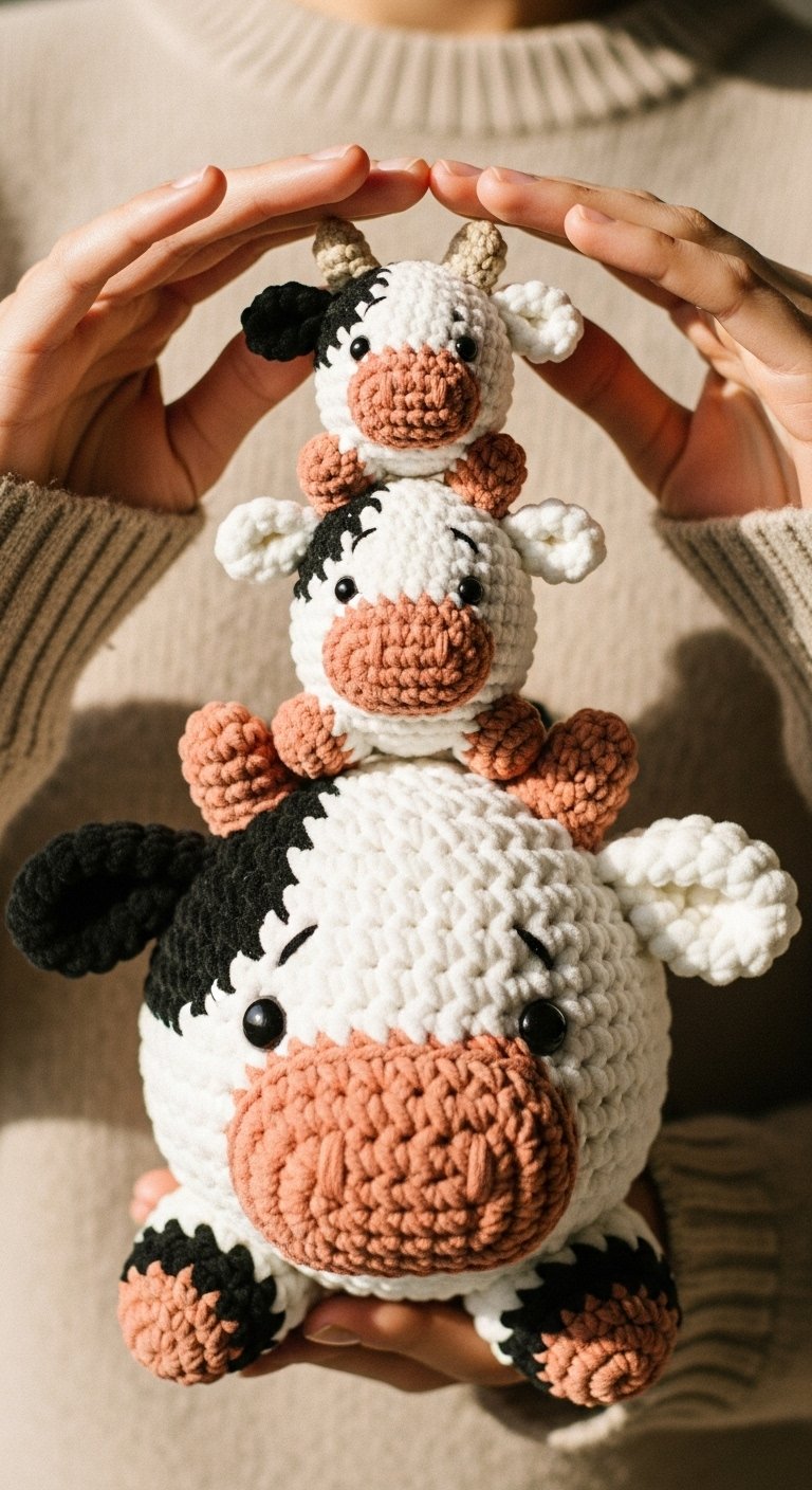 This depends heavily on the yarn weight. A tiny keychain cow made with thin cotton yarn might take 1-2 hours. A giant plush cow made with thick blanket yarn can actually be faster, taking maybe 3-4 hours, because the stitches are so big that you need fewer of them to build the size.