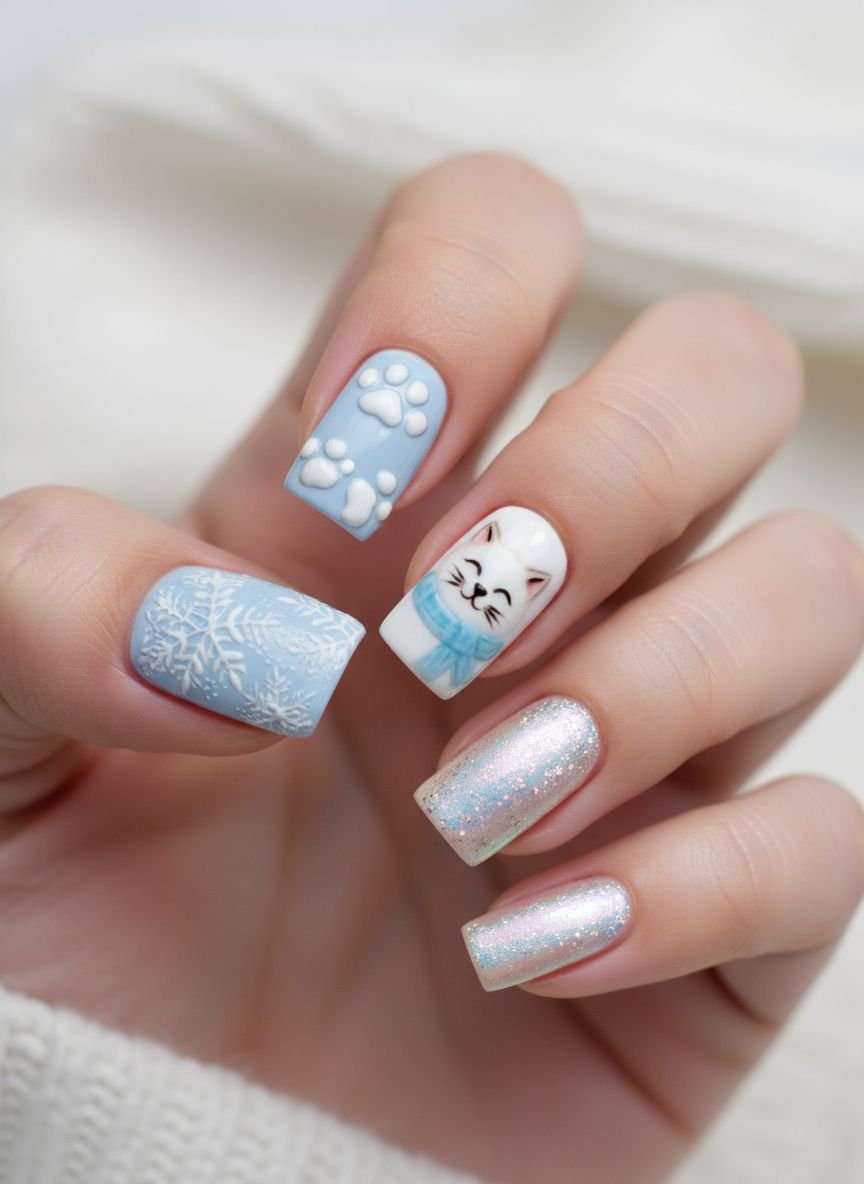 - Cozy Winter Cat Nail Art