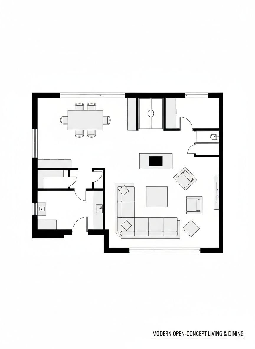 Pro Tip: Center the dining table under its light fixture first. Arrange the living room furniture second. Dining placement is less flexible due to lighting electrical boxes.