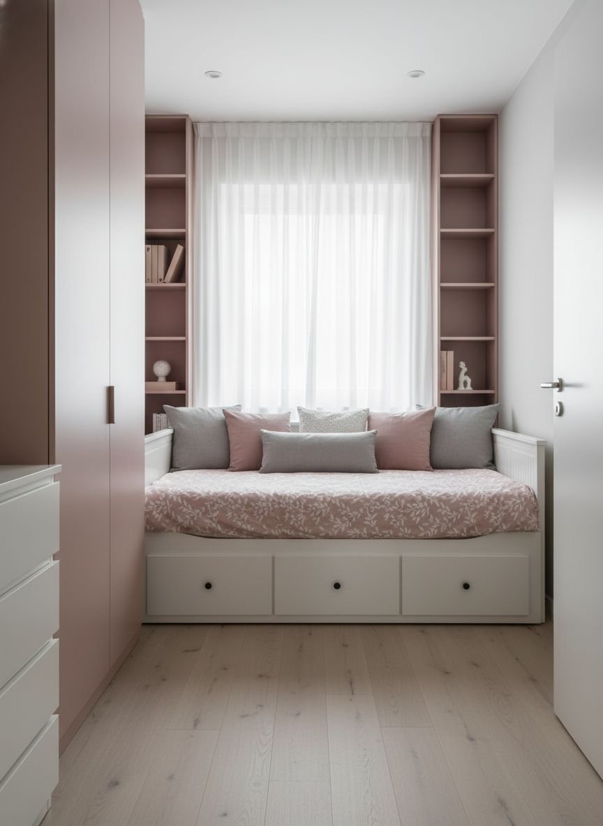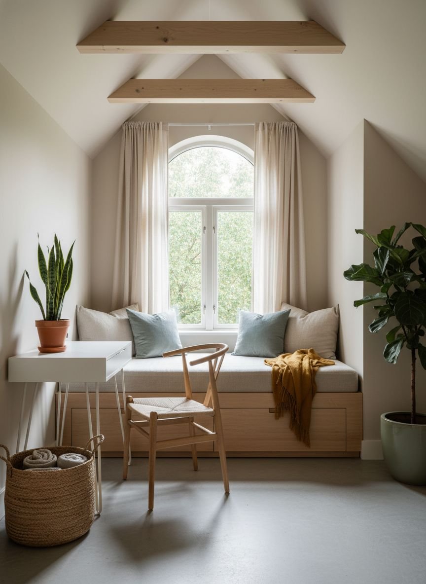 A small bedroom does not mean you cannot have a seating area. Cozy nooks maximize the corners that often go unused. A small armchair or a pouf in the corner creates a dedicated spot for reading or putting on socks. This signals that the room is for living, not just sleeping. If a chair does not fit, a deep window sill can become a bench with the addition of a custom cushion.