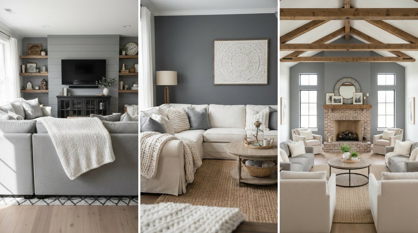 Home Improvement • Living Room 7 Striking Gray Accent Wall Ideas for Farmhouse Living Rooms That Transform Your Space